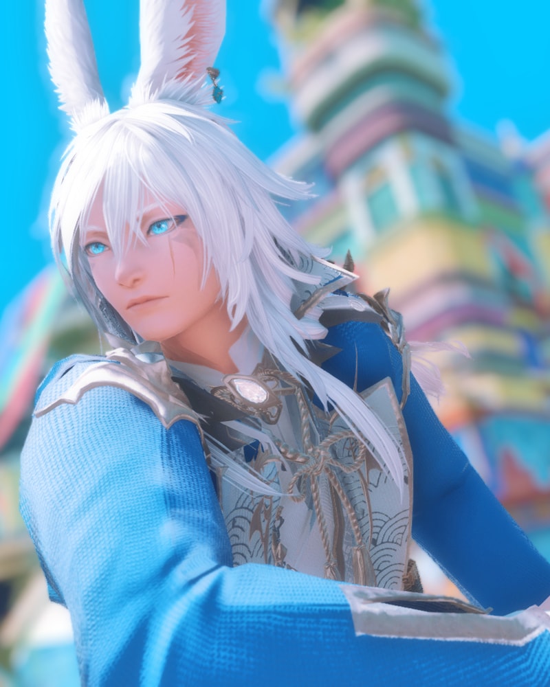 At first blush the man's features are far too fair, too angular, to be purely of the Vieran people. A strong brow and sharp jawline, a straight and prominent nose, high cheekbones, and soft lips. Fair to behold, the man looks close to an Elezen of high station through the lens of a Viera.
