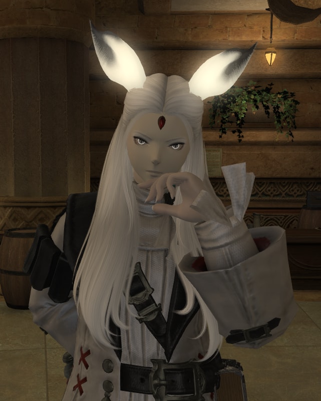Tall, pale, stoic, glowing? At first possibly mistaken for a Viera, the long tail behind her soon enough dissuades such a presumption.
