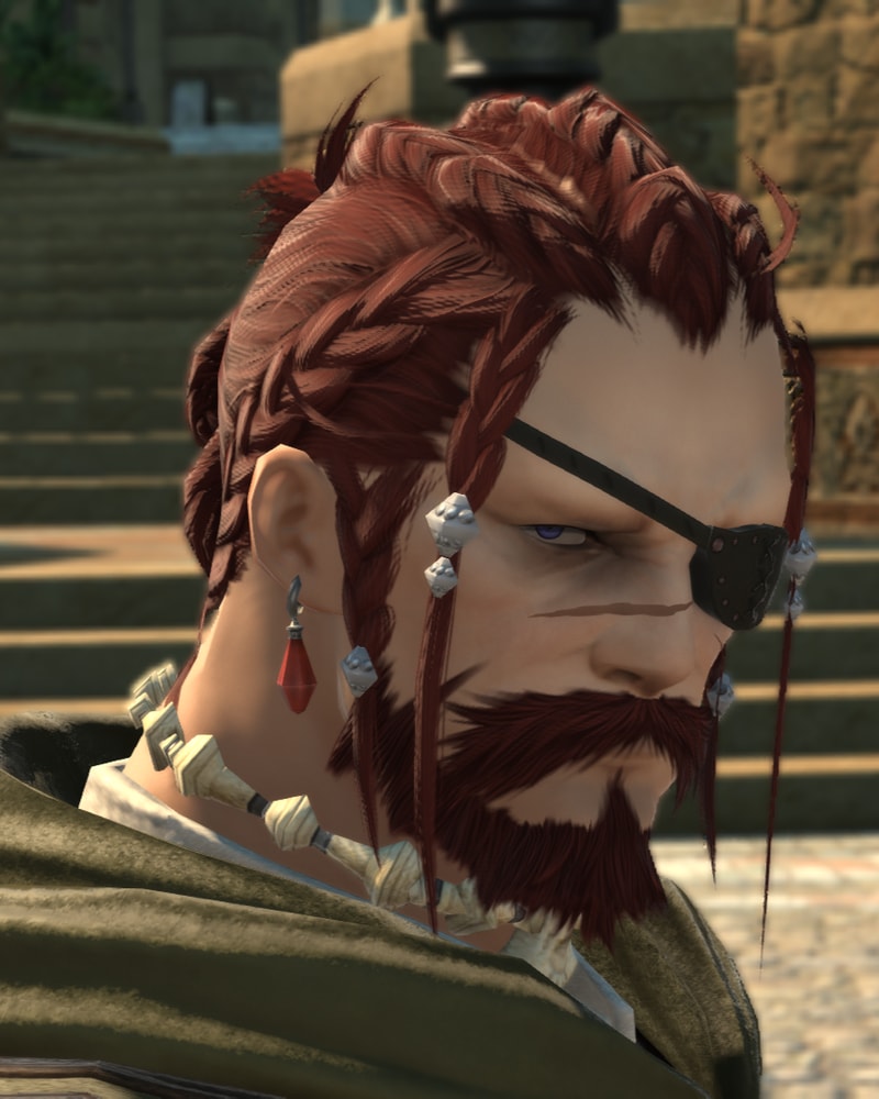 Often seen in the company of his adopted daughter, Abylnfheta Payne, the large highlander has an imposing presence. Purportedly, he and his battle buddy found her, a lone viera child, on the edges of a battlefield. Keenly aware of the myriad terrible ends she could suffer, they rescued her.