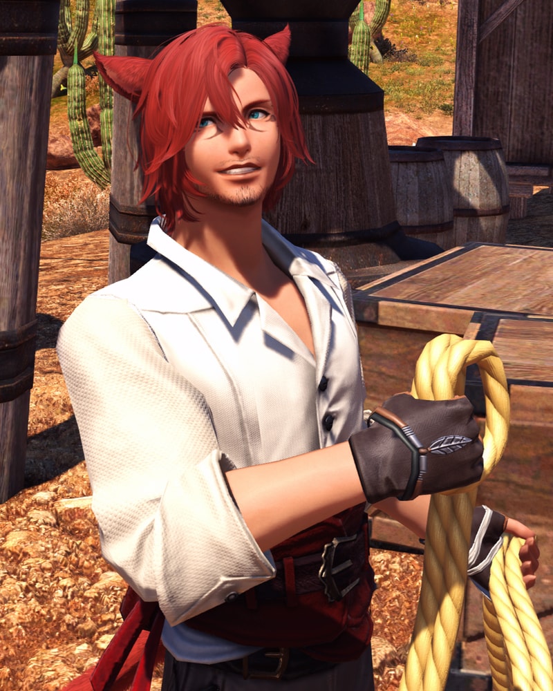 The Roegadyn eyed him up for a moment, small clicks came from behind the handlebar mustache of the Roe before glancing up to the boat as if seeing if anyone was watching. “Well… I may know a spot we keep our stowaways before we toss them off at the first island we find, but I could put in a good word for you. May even be willing to share a small bit of my meals so you don't go starving. But gonna need a little somethin' for the risk I'm takin', it's only fair.” He said with a crooked grin.