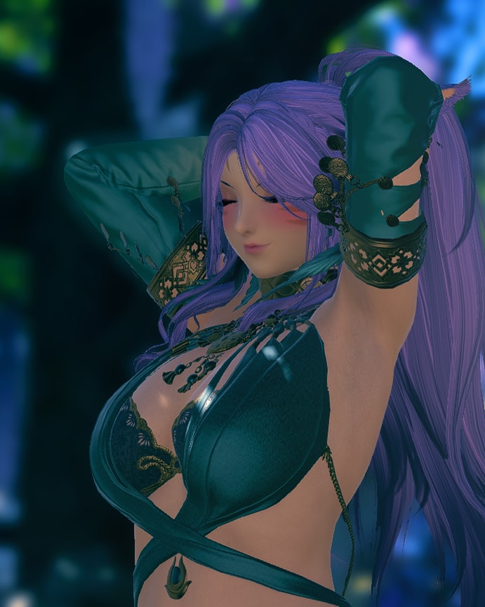 Around this same time, she began to travel to Radz-at-Han and Thavnair with her good friend and mutually proclaimed "brother," Renzo, a snowy-haired Hyur. The pair wandered about the area and came across a dance troupe. Sypha was enthralled and begged to join their number, and to her delight, she was accepted to train with them. She worked hard, putting in tens of hundreds of hours of blood, sweat, and tears, bruising and cutting her hands and fingers countless times in the process, but with time came a certain mastery of the art, and she's stuck with dancing ever since.
