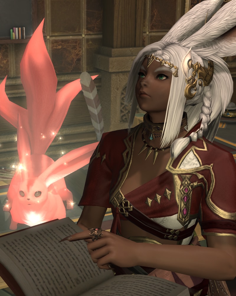 After returning briefly to Rabanastre to check in and learning of the blasphemies in her own home city, she offered her aid to the Black Lions and assisted them in flushing one out of the waterways. At Commander Barjzhan's request, she accompanied them through their subsequent efforts in Corvos. When news reached them of the burning skies over Garlemald, she returned to aid the Ilsabard Contingent once more.